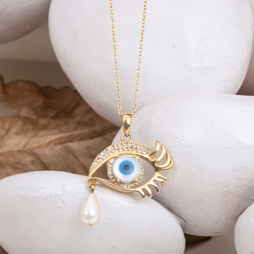 Elegant evil eye pendant with blue centerpiece